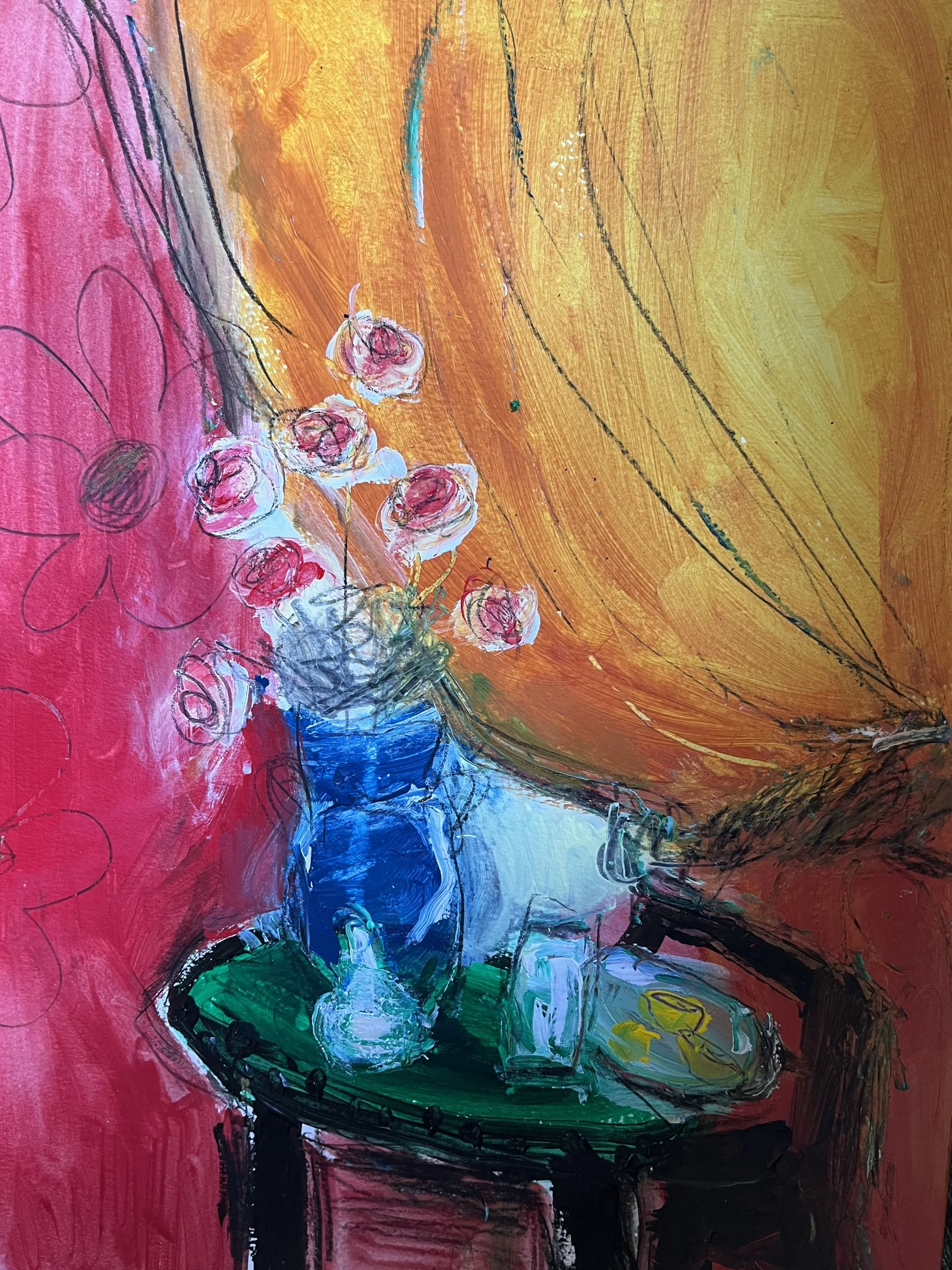 flowers on a table 18x24 acrylic on paper $300