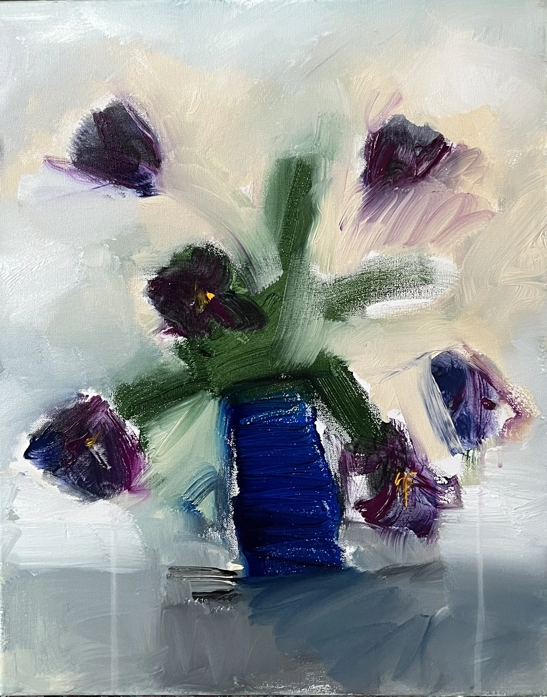 tulips in a blue vase #1 16 x 20 SOLD